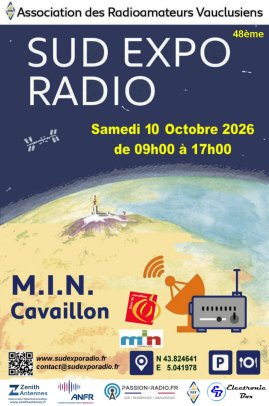 Le salon SUD EXPO RADIO 2026 organisé par l'ARV84se déroulera au MIN de Cavaillon Halle multifonctionsle Samedi 10 Octobre 2026 de 09h00 à 17h00